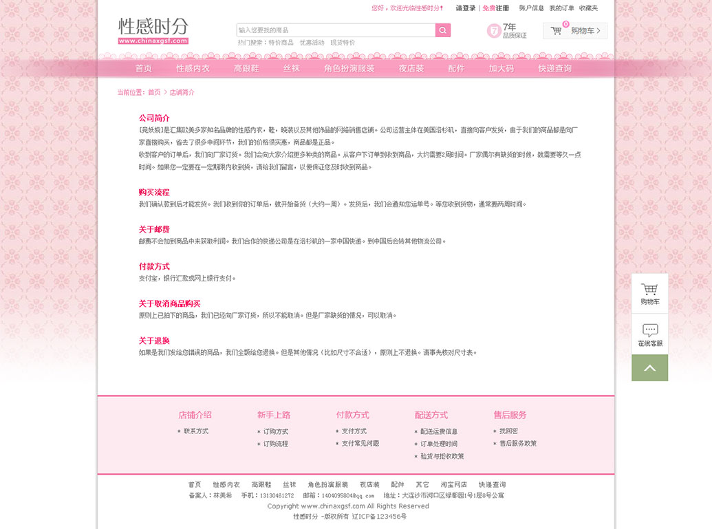 性感時分是專門銷售和介紹美國性感內(nèi)衣,絲襪,角色扮演服裝和性感高跟鞋的店鋪。總部在美國洛杉磯,在中國大連設(shè)有轉(zhuǎn)運站。由于大部分商品都從美國發(fā)貨,所以我們可以提供種類繁多的商品供您選擇。我們代理的品牌包括(單不僅限于):Leg Avenue, Dreamgirl, Music Legs, Seven 'til Midnight, Allure, Elegant Moments...