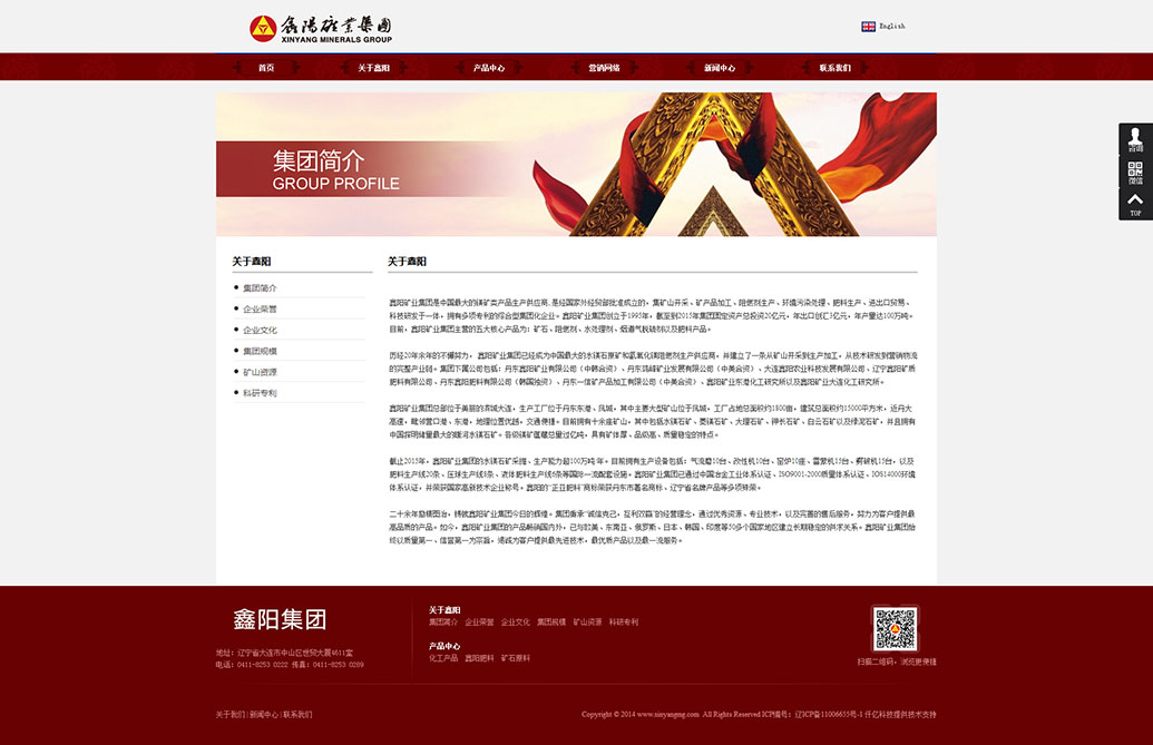 鑫陽礦業(yè)集團是中國最大的鎂礦類產(chǎn)品生產(chǎn)供應(yīng)商, 是經(jīng)國家外經(jīng)貿(mào)部批準成立的,集礦山開采、礦產(chǎn)品加工、阻燃劑生產(chǎn)、環(huán)境污染處理、肥料生產(chǎn)、進出口貿(mào)易、科技研發(fā)于一體,擁有多項專利的綜合型集團化企業(yè)。鑫陽礦業(yè)集團創(chuàng)立于1995年,截至到2015年集團固定資產(chǎn)總投資20億元...