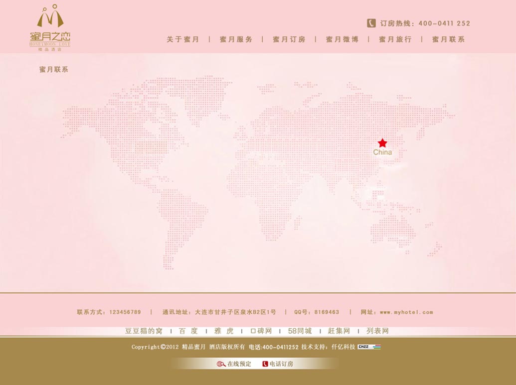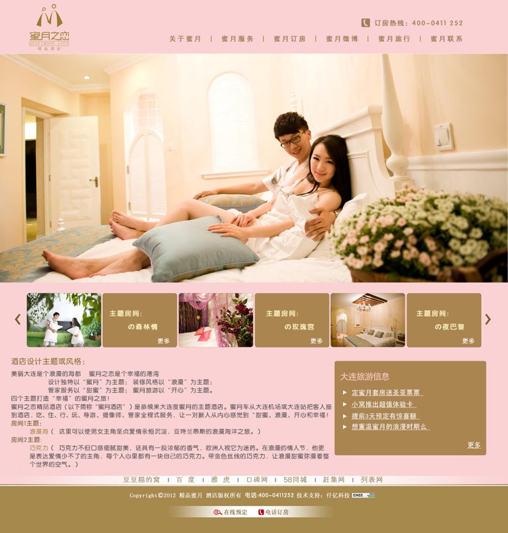 大連蜜月之戀精品主題酒店(北站店) 位于大連北站甘井子區(qū)風(fēng)華路泉水B2區(qū)1號(靠近大連北站僅5分鐘車程amp;靠近華南廣場商業(yè)區(qū)), 大連蜜月之戀精品主題酒店(北站店)預(yù)訂電話:400-666-5511 酒店裝修獨特,摒棄一成不變的酒店模式;搖曳燭光、醉人紅酒,浪漫裝飾,神秘色彩;讓你和TA,打造至愛空間,獨享唯美格調(diào)...