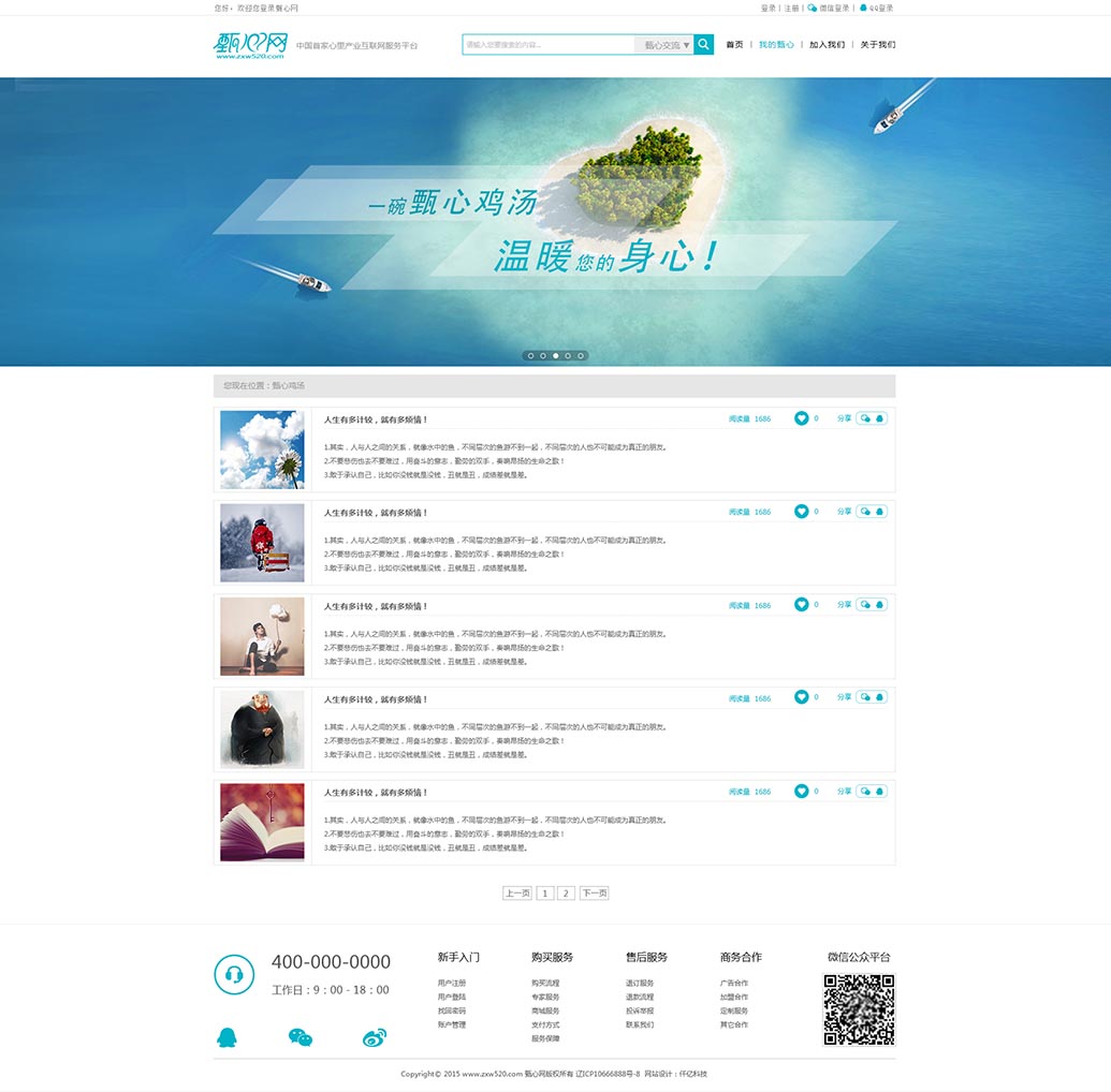 甄心網(wǎng)成立于2016年2月,是大連甄心網(wǎng)絡(luò)科技有限公司斥巨資打造的中國最專業(yè)心理產(chǎn)業(yè)互聯(lián)網(wǎng)服務(wù)平臺。集產(chǎn)品研發(fā)、培訓、服務(wù)為一體的現(xiàn)代化互聯(lián)網(wǎng)產(chǎn)業(yè)。甄心網(wǎng)專注于每個細節(jié),努力的為廣大用戶和咨詢師打造最滿意的服務(wù)平臺。讓每一位用戶都能享受到及時、專業(yè)的心理服務(wù)、打造和諧的心理健康世界...