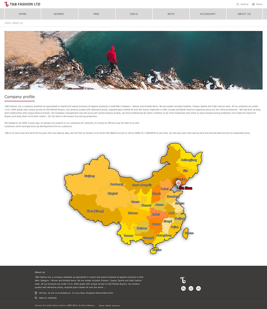 T&B Fashion Ltd, a company establish as specialized in import and export business of apparel products in both Main Category : Woven and Knitted items. We are widely included Outdoor, Casual, Sports and High Fashion wear. All our products are under I.S.O. 9000 grade with unique serves to USA Market Buyers.