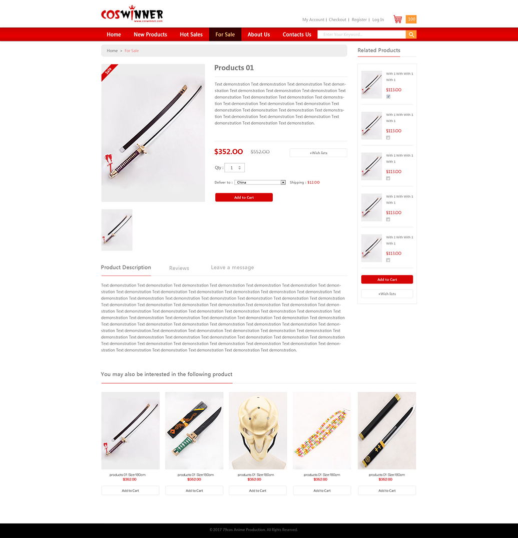 Coswinner/Coswinners is a factory direct shopping flatform, with best quality and best price. We will provide the most exquisite and original equipment and custom service for each cosplayer.