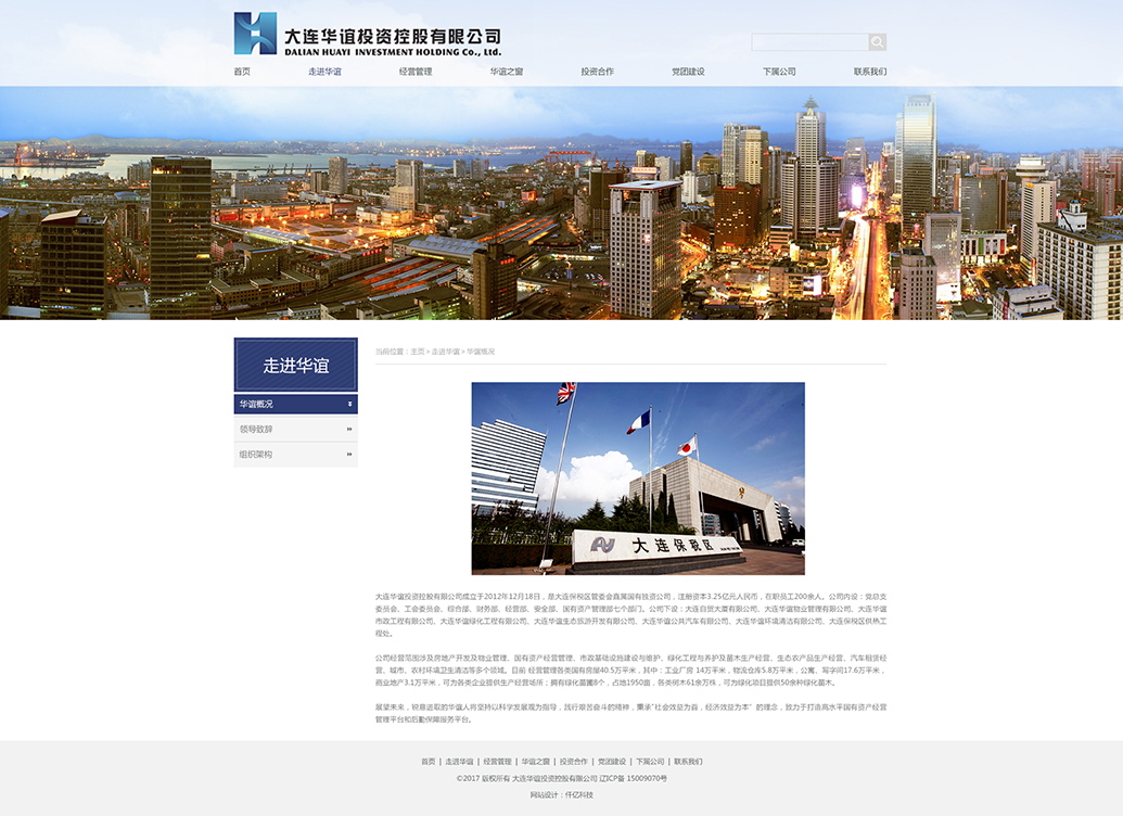大連華誼投資控股有限公司現(xiàn)擁有:國有資產(chǎn)、供熱、市政、綠化、物業(yè)、生態(tài)旅游開發(fā)、公共汽車等7個全資子公司。經(jīng)營范圍涉及國有資產(chǎn)經(jīng)營管理、市政工程、綠化工程、物業(yè)管理、熱力供應(yīng)、生態(tài)旅游開發(fā)、汽車租賃等多個領(lǐng)域。未來,華誼公司將著力于確保國有資產(chǎn)保值增值的基礎(chǔ)上,多種經(jīng)營全面發(fā)展,為保稅區(qū)經(jīng)濟更快...