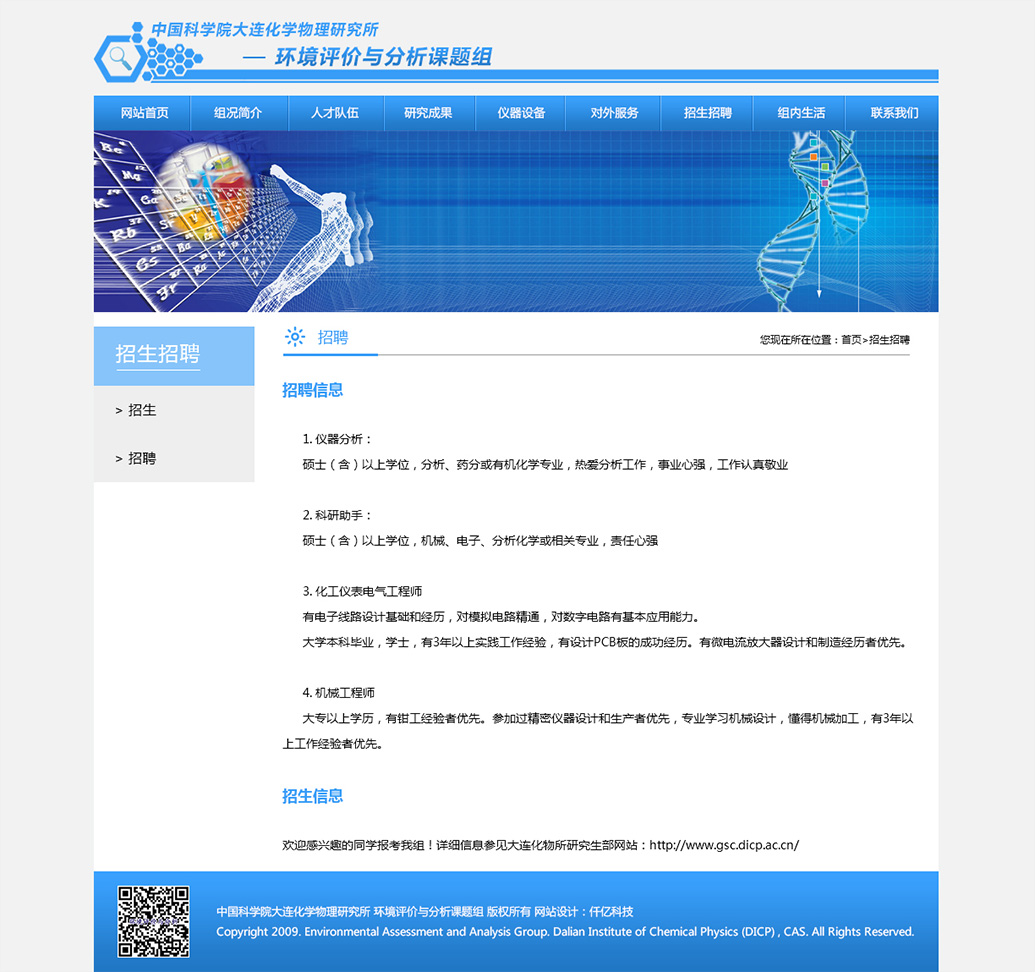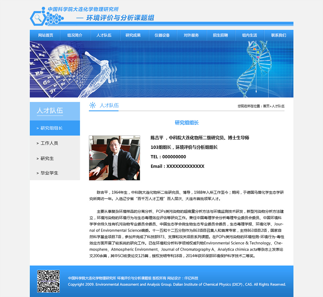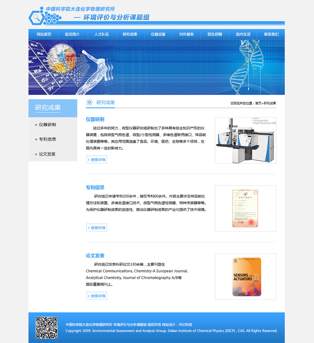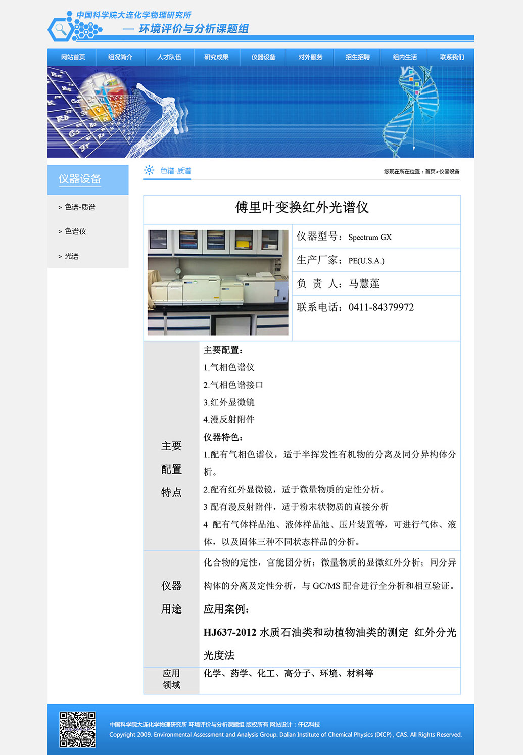 中國(guó)科學(xué)院大連化學(xué)物理研究所環(huán)境評(píng)價(jià)與分析研究組(103組)是一個(gè)集基礎(chǔ)研究、儀器研發(fā)及對(duì)外服務(wù)于一體的綜合科研平臺(tái),位于大連化學(xué)物理研究所生物技術(shù)樓(26#樓),現(xiàn)有研究員3人,副研究員11人,助理研究員3人,其它工作人員10余人,在讀研究生20人,已經(jīng)形成一支包括多層次研究的科研隊(duì)伍和檢測(cè)服務(wù)團(tuán)隊(duì)...