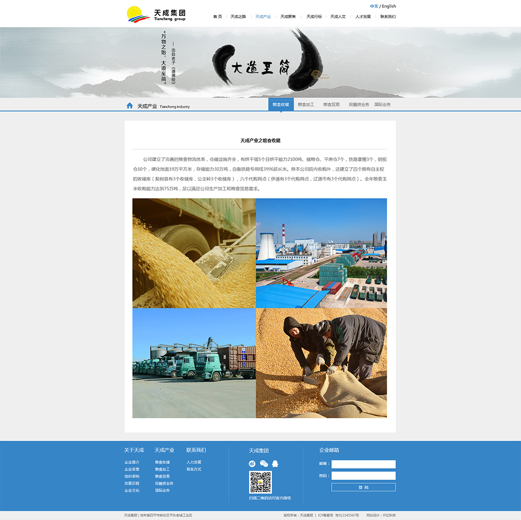天成集團(tuán)成立于2005年,是一家集糧食收儲(chǔ)、玉米深加工、國(guó)際貿(mào)易為一體的多元化現(xiàn)代企業(yè)集團(tuán)。致力于為食品、醫(yī)藥、化工、飼料等行業(yè)提供優(yōu)質(zhì)的糧油原料,并為消費(fèi)者提供健康營(yíng)養(yǎng)的綠色食品。集團(tuán)年經(jīng)營(yíng)糧食300萬(wàn)噸,其中:收儲(chǔ)100萬(wàn)噸...