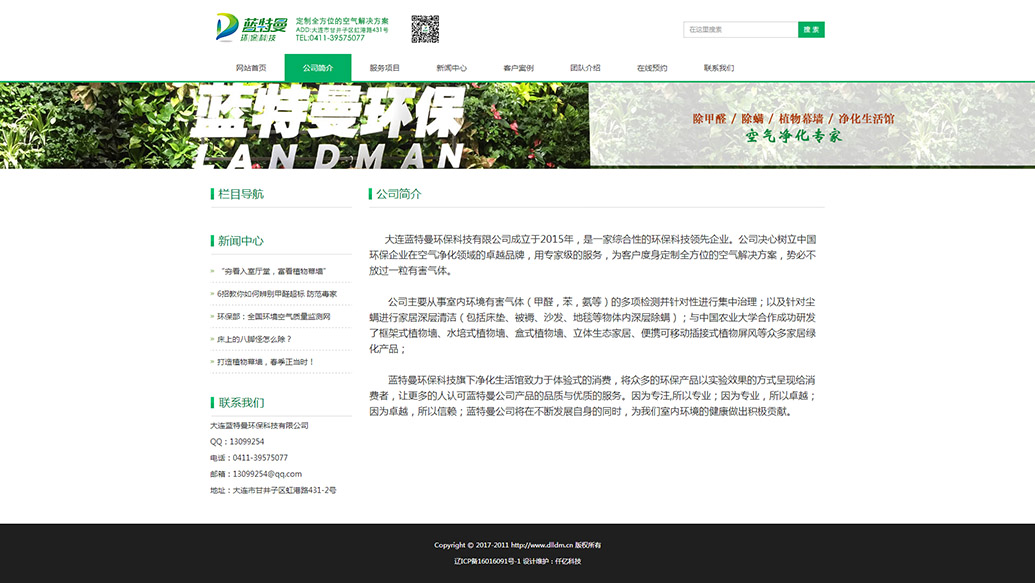 大連藍(lán)特曼環(huán)保科技有限公司成立于2015年,是一家綜合性的環(huán)??萍碱I(lǐng)先企業(yè)。公司決心樹立中國(guó)環(huán)保企業(yè)在空氣凈化領(lǐng)域的卓越品牌,用專家級(jí)的服務(wù),為客戶度身定制全方位的空氣解決方案,勢(shì)必不放過一粒有害氣體。公司主要從事室內(nèi)環(huán)境有害氣體(甲醛,苯,氨等)的多項(xiàng)檢測(cè)并針對(duì)性進(jìn)行集中治理;