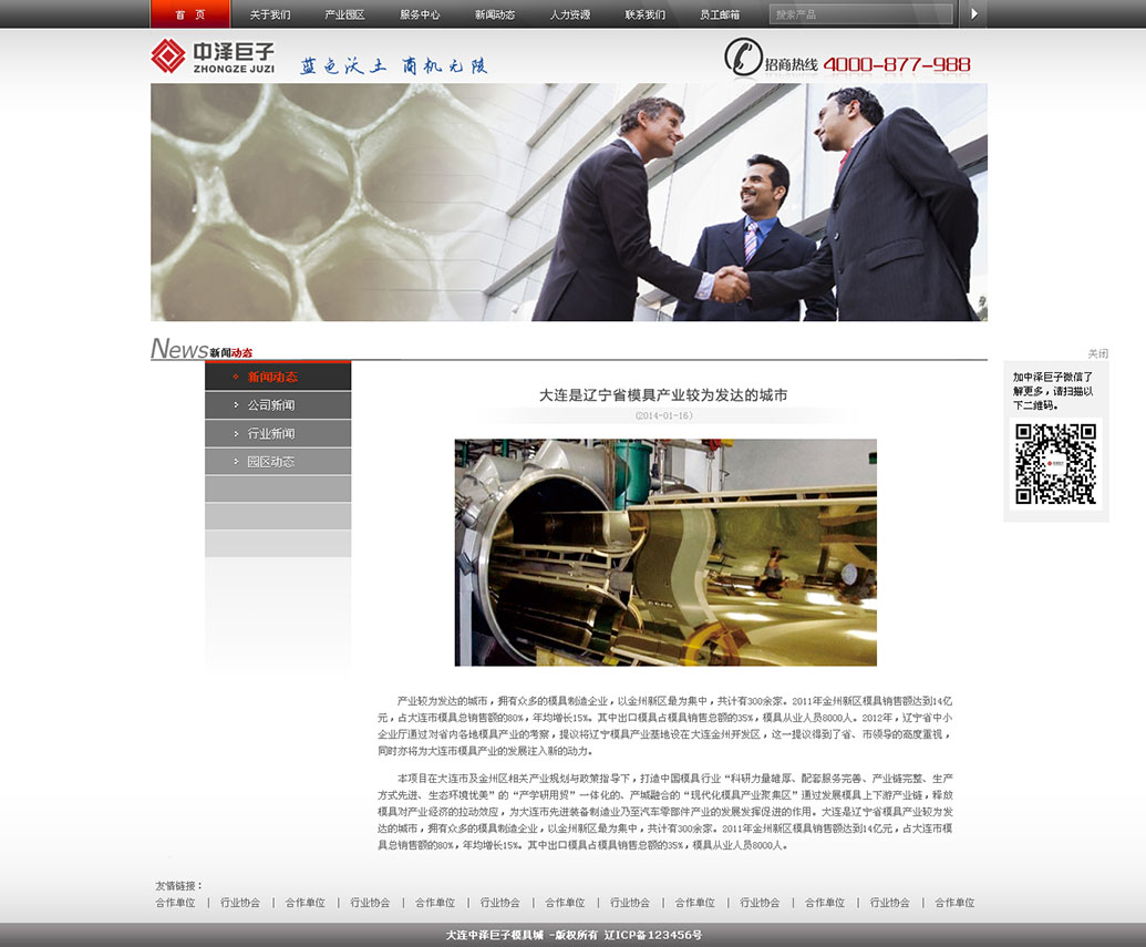 大連中澤巨子產(chǎn)業(yè)發(fā)展有限公司位于大連市雙D港,項(xiàng)目投資總額20億元,項(xiàng)目規(guī)劃將建設(shè)“大連中澤產(chǎn)業(yè)園”。項(xiàng)目主要包含模具產(chǎn)業(yè)區(qū)、智能裝備產(chǎn)業(yè)區(qū)、汽車零部件產(chǎn)業(yè)區(qū)和公共服務(wù)中心四個(gè)組成部分,總占地面積40余萬(wàn)平方米,一期用地面積約11萬(wàn)平方米,投產(chǎn)后預(yù)計(jì)年產(chǎn)值可達(dá)25億元,年利稅約4.5億元。